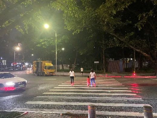 夜晚,路口車速明顯加快,特別雨霧天氣、對面車輛燈光影響等視線不足情況下,司機(jī)很難及時識別到過馬路的行人,這就非常危險。