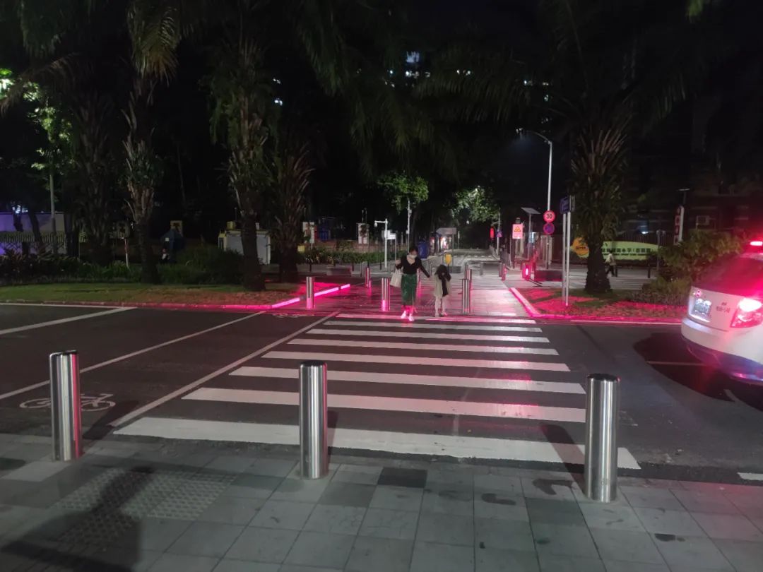 近期,深圳市交通運輸局福田管理局在香梅路和商報路交匯路口以及農(nóng)園路和潤園路交匯路口人行橫道先行安裝啟用了「人行橫道激光安全警示裝置」。